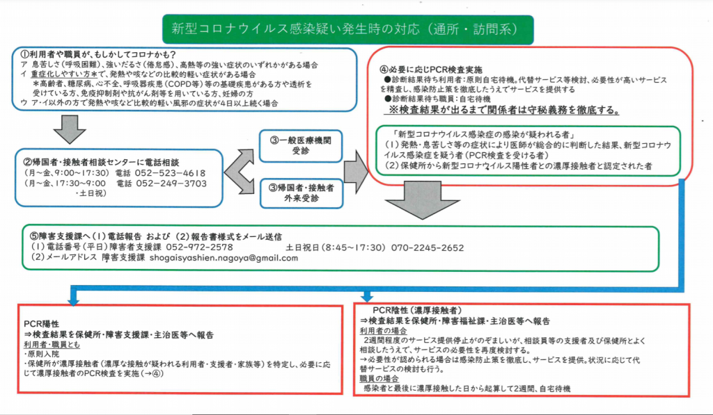 名古屋市からも万が一、事業所でコロナが発生した場合の対応フローなどを頂き、スタッフだけでなくメンバーさんへも周知しています。