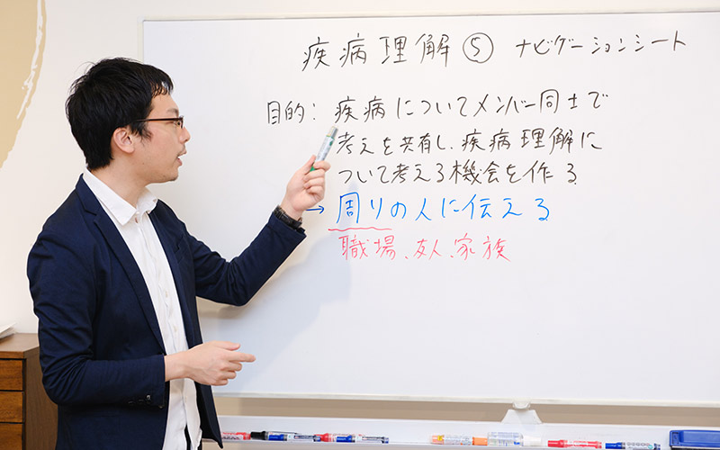 利用者さんに活動と気分の関係について丁寧なモニタリングを行いながら、行動の活性や不活性が気分の上昇と下降に与える影響について学習していただきます。